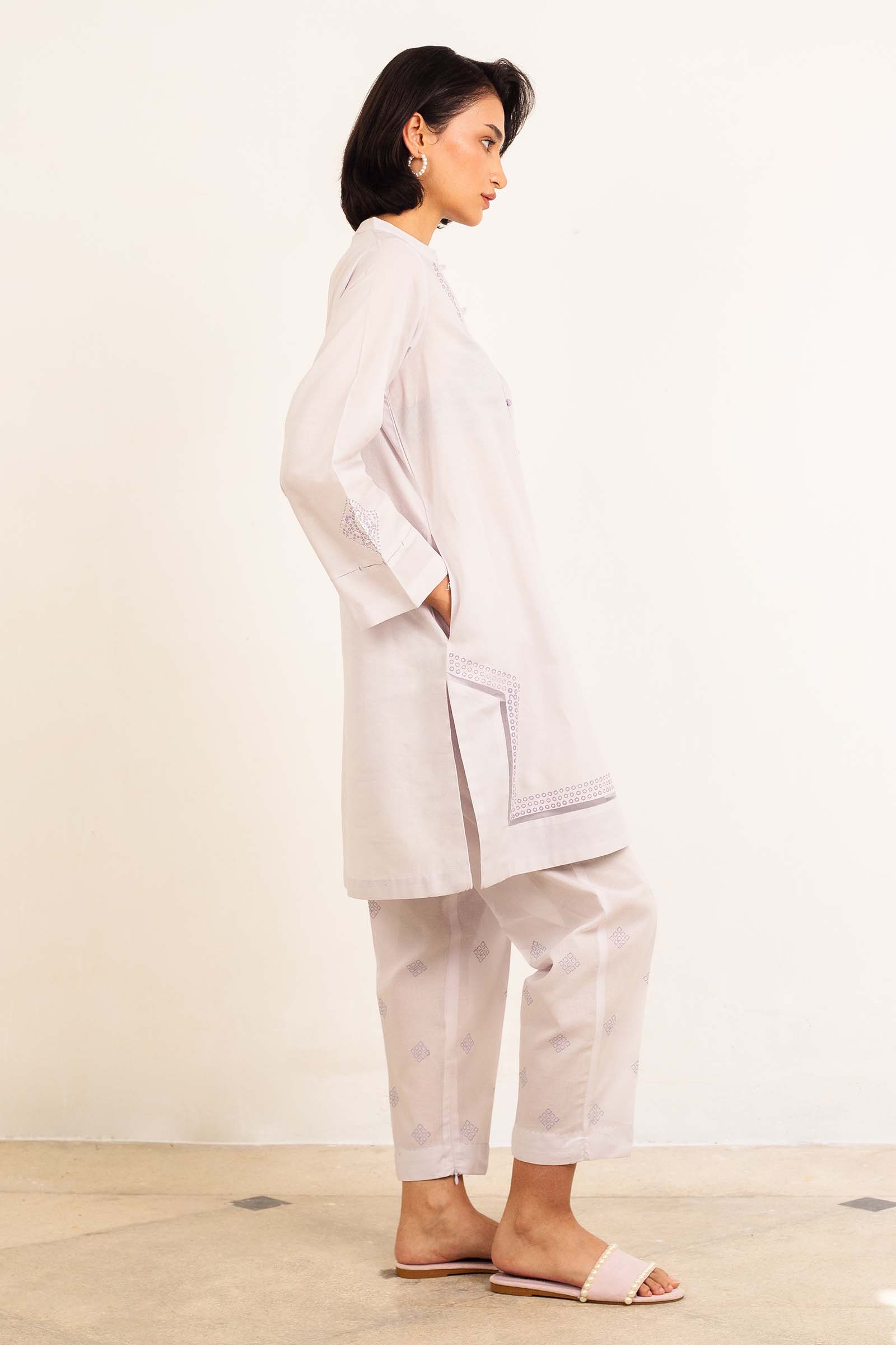 Our classic loose-fit kurta elevated with block print details paired with block printed slim fit pants.